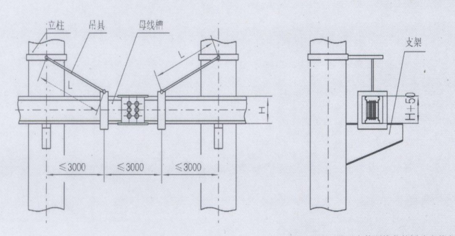 母線槽懸吊安裝母線檔吊式安裝兩安裝文架的距離不大于3m