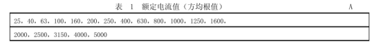 母線槽的額外電流值應(yīng)為表1中的規(guī)范值之一。