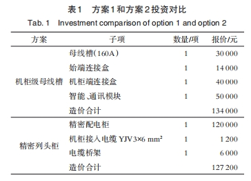 針對方案1和方案2不同機(jī)柜結(jié)束配電方案,兩者的出資造價(jià)對比如下,如附表1所示。
