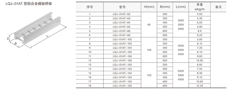 鋁合金電纜橋架在某種結構形式中無其它結構形式中的某-種產品類別,選型可作代用表示。例如:在LQU-CC型槽式鋁合金電纜橋架結構形式中,無鋁合金配線橋架中的LPC-03D, 即表示為LFC-CC-03D。